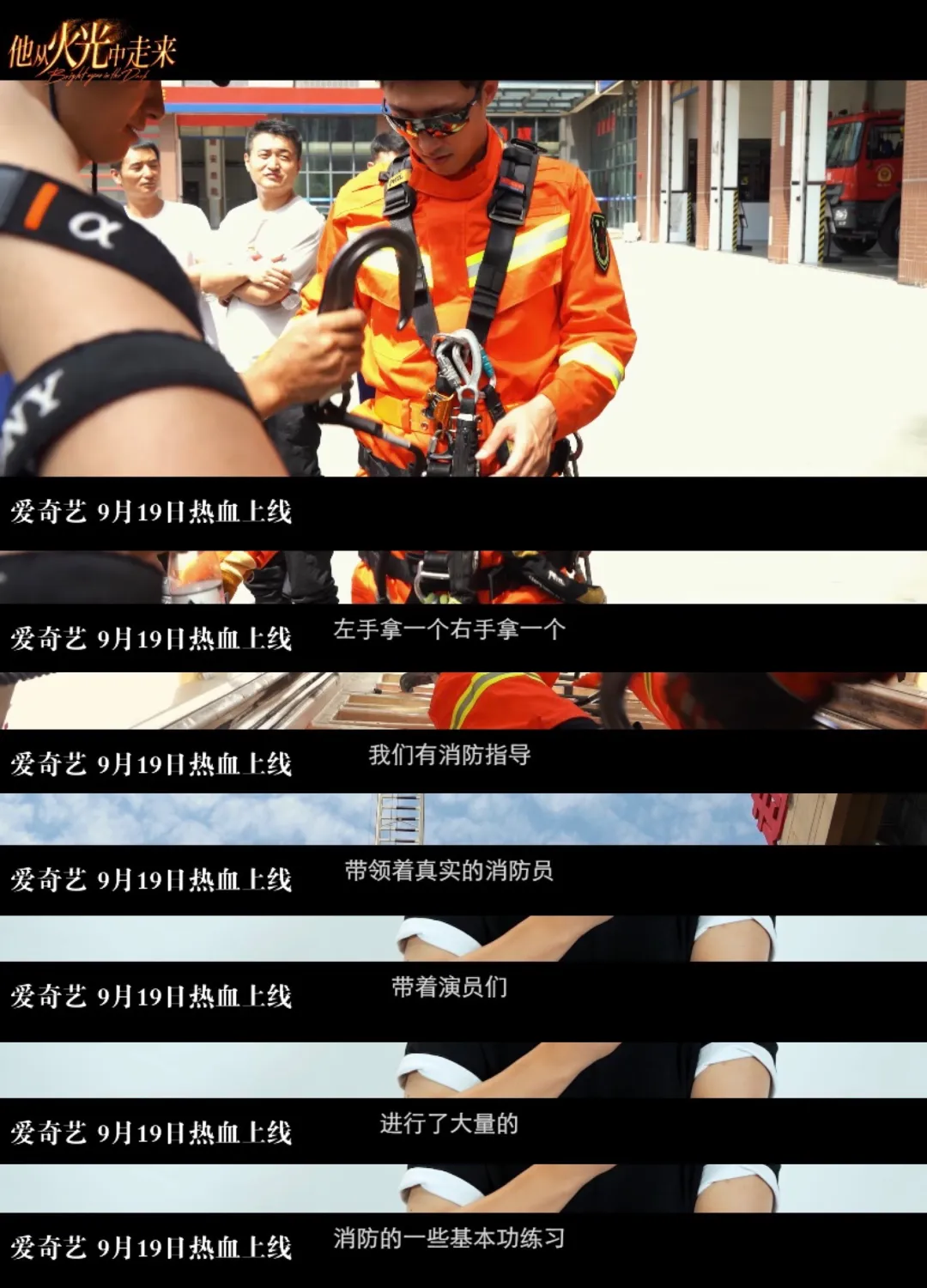 演员跟着消防队员一步一个脚印一起训练,追求将消防的基本动作,真正地融入到他们的习惯中去。