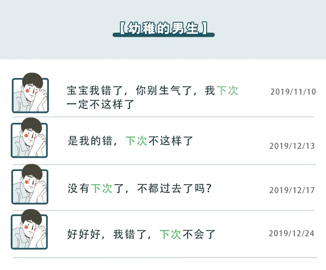 每次吵架,他都会主动道歉、认错,还信誓旦旦作出保证。