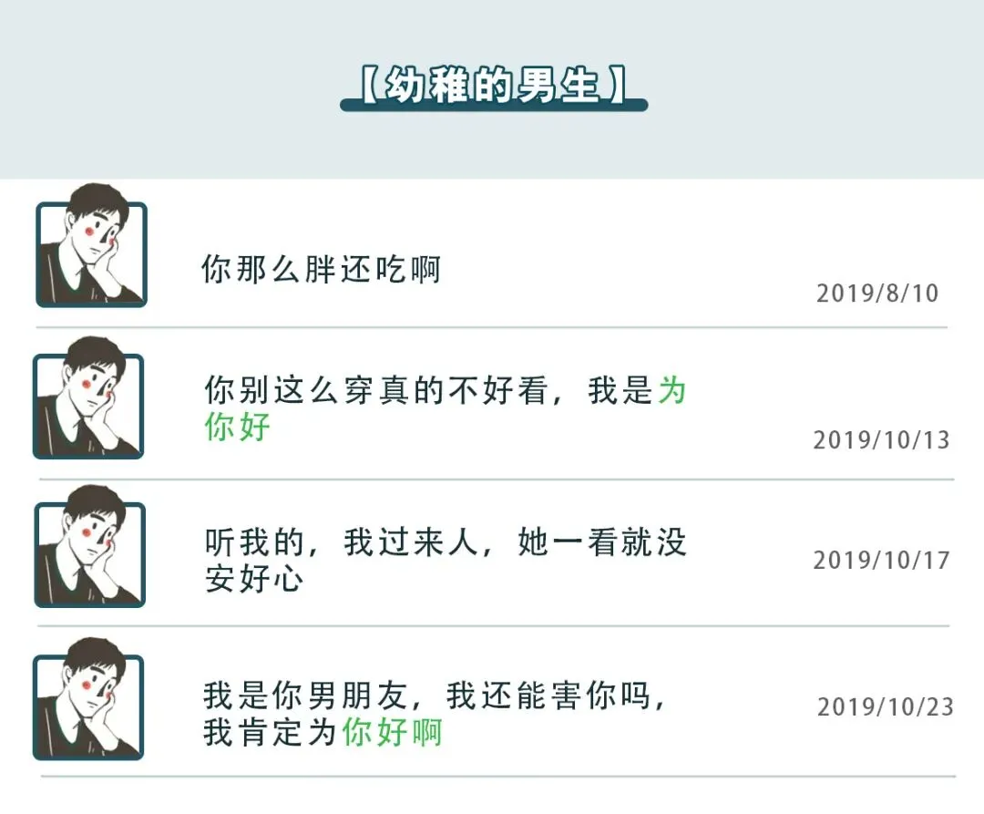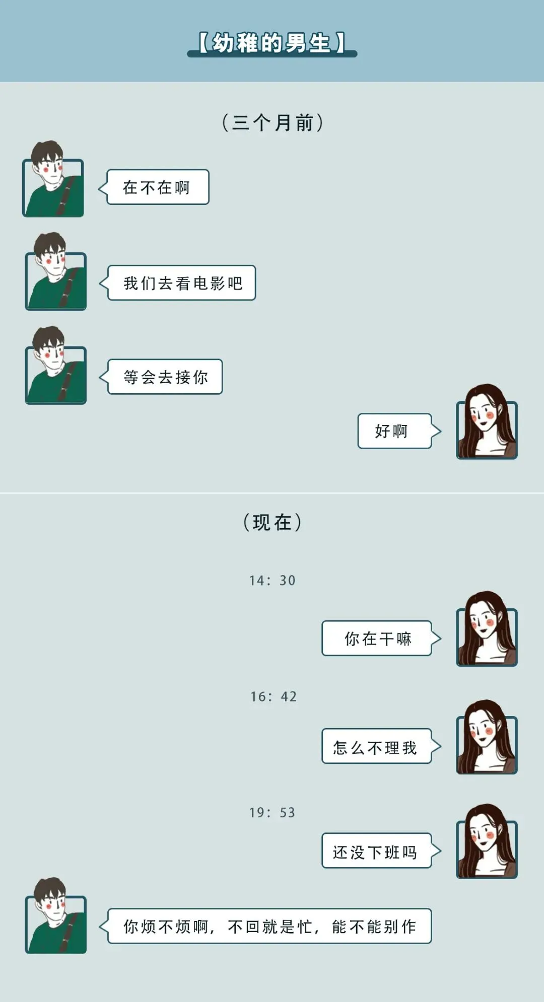 幼稚的男生,把温柔误解成“为你好”,以自己的喜好帮你做决定。