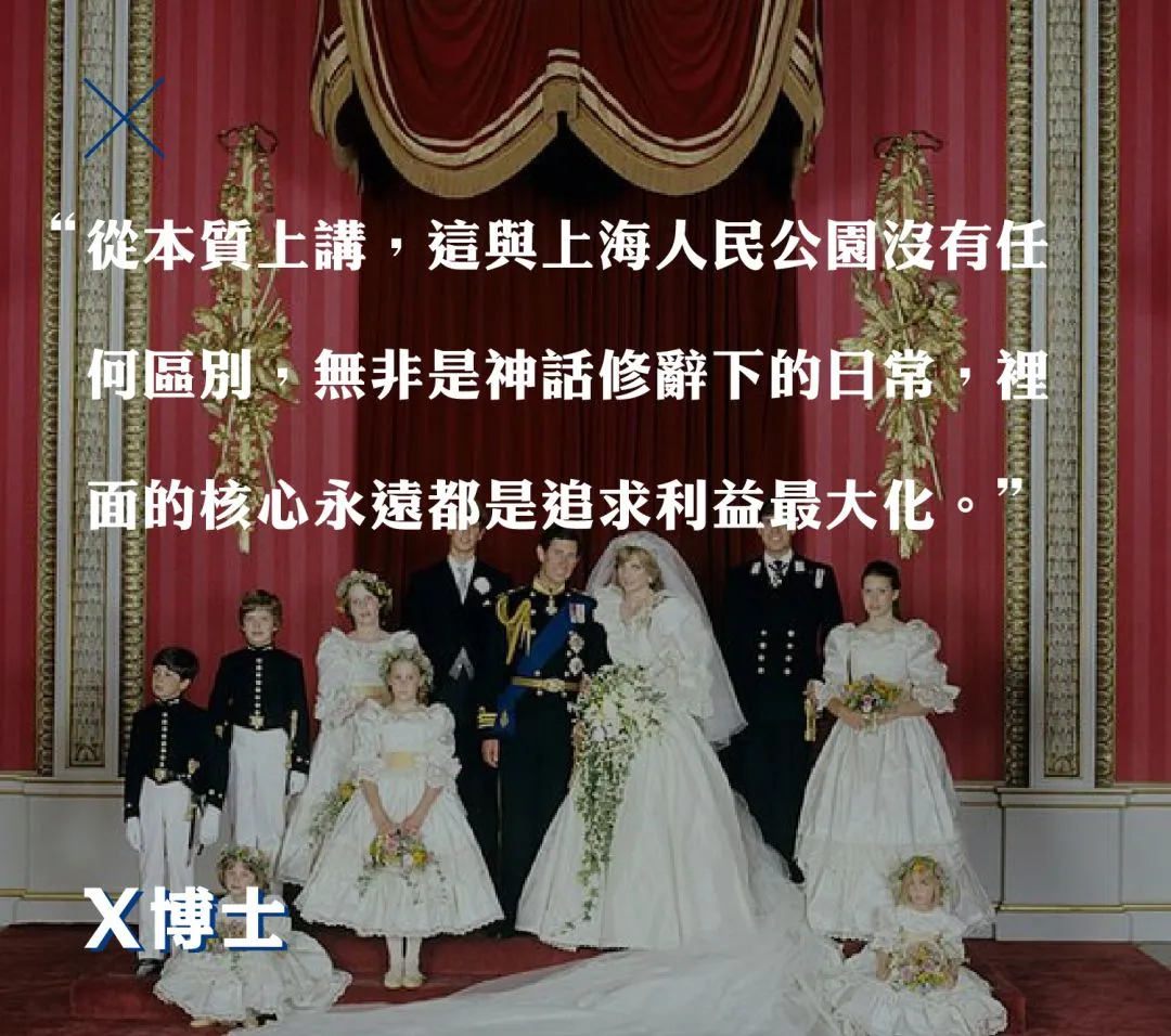 个人形象、彩礼及户口串成了一部欧洲王室婚恋史。从本质上讲,这与上海人民公园没有任何区别,无非是神话修辞下的日常,里面的核心永远都是追求利益最大化。