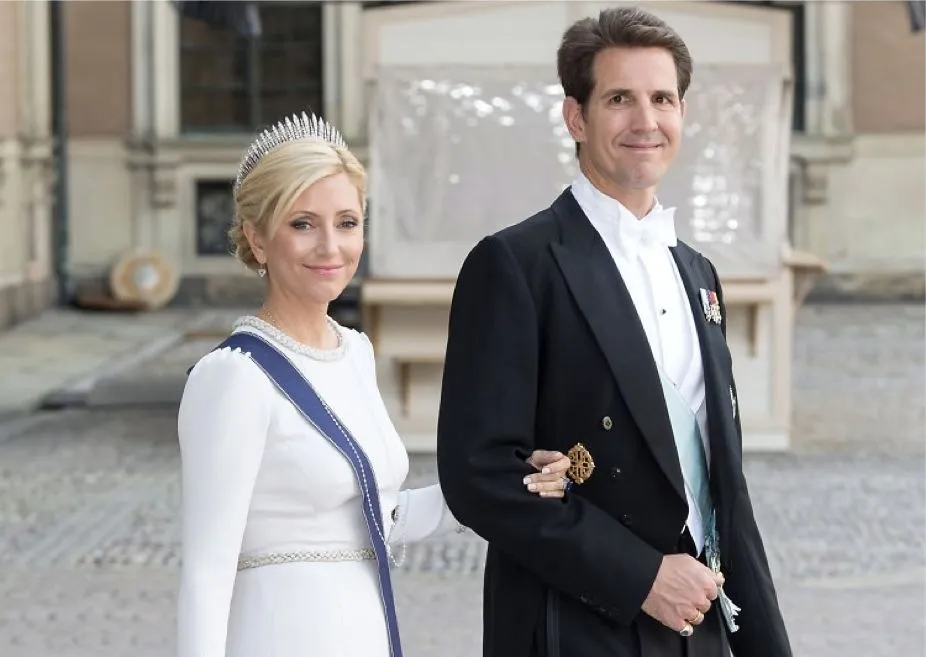 三闺女玛丽-山塔尔则嫁给了希腊废黜王子帕夫洛斯,变成了希腊废黜王储妃。13年的时候还跟着老公去参加了瑞典公主维多利亚的婚礼,戴王冠穿礼服,new money摇身一变成老贵族,有模有样。