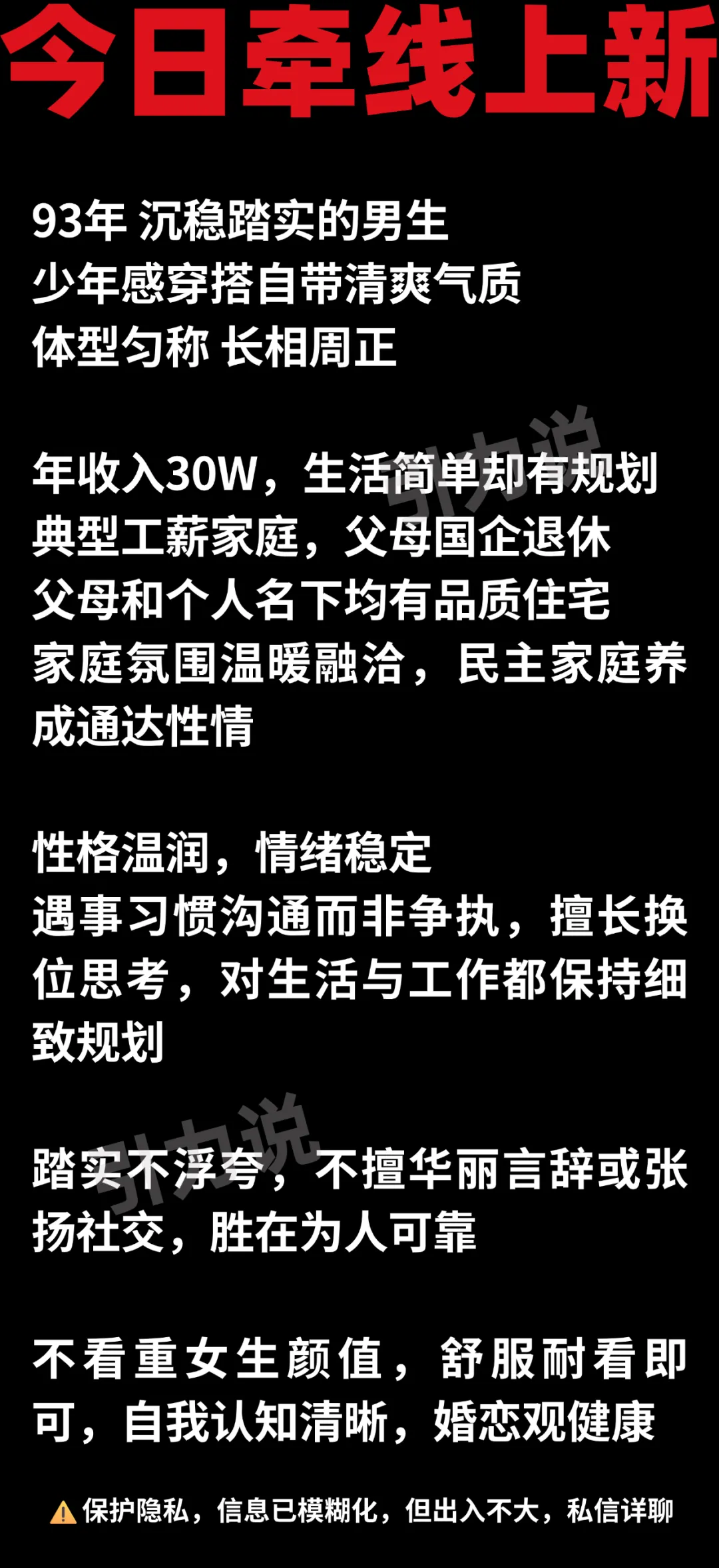 >【优质单身推荐】不颜控 婚恋认知清晰 少年感 | 93年 性格温润 年收入30W 工薪家庭 父母和个人名下均有品质住宅