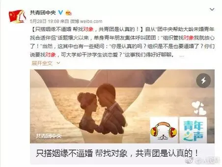 中共中央、国务院印发的《中长期青年发展规划(2016—2025年)》对“青年婚恋”提出了明确的目标与措施,希望工会、共青团、妇联等群团组织和社会组织关注青年婚恋,为青年婚恋交友提供必要的基础保障和适合青年特点的便利条件。
