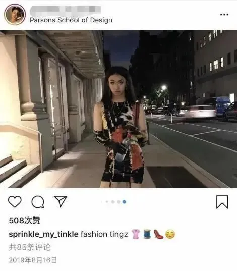 照片中的她,身材纤细长发披肩,全身上下都穿着名牌,明星范儿十足。