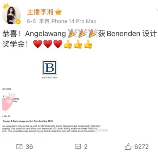 还通过层层选拔,考入英国最难进的博耐顿女校。并且打败了全校90%的学生,获得了67万元奖学金。