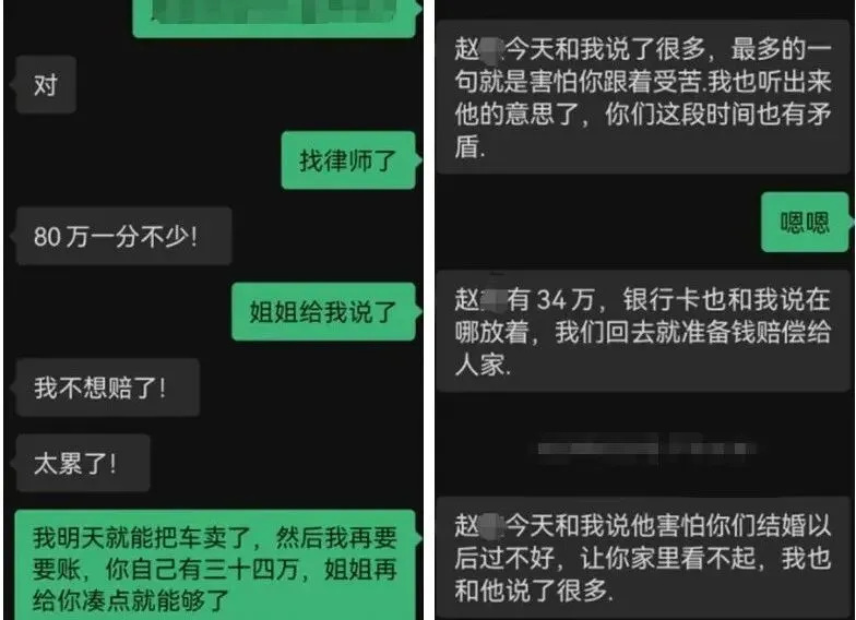 赵某先是表达了思念之情,但又提出分手,在李女士的再三追问下,得到了“分手理由”。原来,赵某因殴打他人被关进了拘留所,需赔付对方80万元才能得到谅解书,家里人请了律师,他才得以拿到手机。为了不耽误李女士的幸福,他决定“为爱放手”,自己去背负债务。