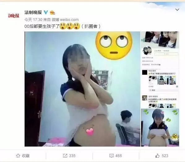 2016年4月,一00后少女晒怀孕照被曝“结婚”。