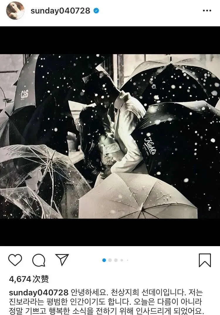 对此SM方面官方承认了这一消息并表示:“智声Sunday确实将于7月12日正式举办婚礼,婚礼将以非公开的形式举行”。去年11月时,Sunday就曾正式通过INS向大家传达她要结婚的消息。据悉她原计划于今年3月与新郎完婚,但因为疫情原因,婚礼不得不推迟至7月。Sunday的丈夫是模特出身,身材挺拔、长得也非常帅气。结婚消息公开后,Sunday还曾在INS上传自己和丈夫的结婚照。智声Sunday(本名秦宝拉)出生于1987年,2001年时她参加了第1届SM青少年Best选拔大会,并在大会上获得了全体大奖,此后便加入SM公司成为其练习生。据悉,Sunday训练期间得到了当时SM舞蹈老师黄上勋,沈在元以及声乐老师张镇永的共同认可,实力非常强。她在2004年7月28日以Sunday的名义在日本出道并发行第一张日文单曲《丁香花的单恋》,第二年便以天上智喜组合成员的身份正式出道。天上智喜出道后发行了《Too Good》《Boomerang》等多首热门歌曲,由于四人唱歌和舞蹈实力俱佳,所以组合备受大众的喜爱,曾获得过包括第9届Mnet亚洲音乐大奖最佳跳舞歌曲奖在内的多个奖项。2011年时,Sunday还与Dana组成了小分队天上智喜Dana&Sunday,并发行数码单曲《请看着我(One More Chance)》《相遇是美式咖啡》 等歌曲,人气非常不错。组合活动渐渐停滞后,Sunday就一直作为音乐剧演员进行活动。目前她也正以音乐剧活动中。夜里饿了想吃夜宵又怕长肉,让男友骂一下自己不要吃,没想到人一点儿不客气放开了骂,被骂到完全自闭..感觉再也吃不下夜宵了