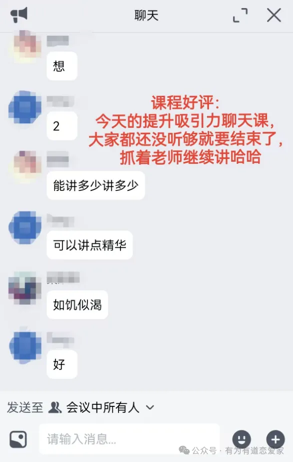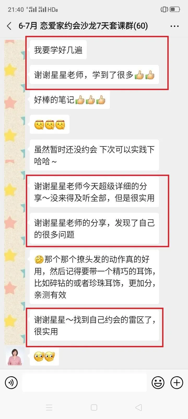 多次开展《男女思维解码》、《聊天晋级课》等系列课程,广受学员好评