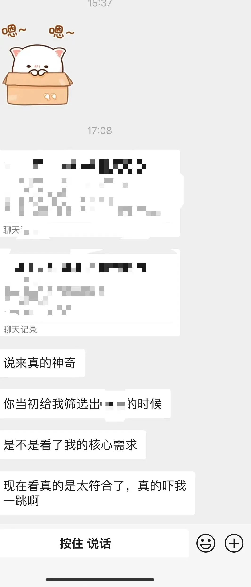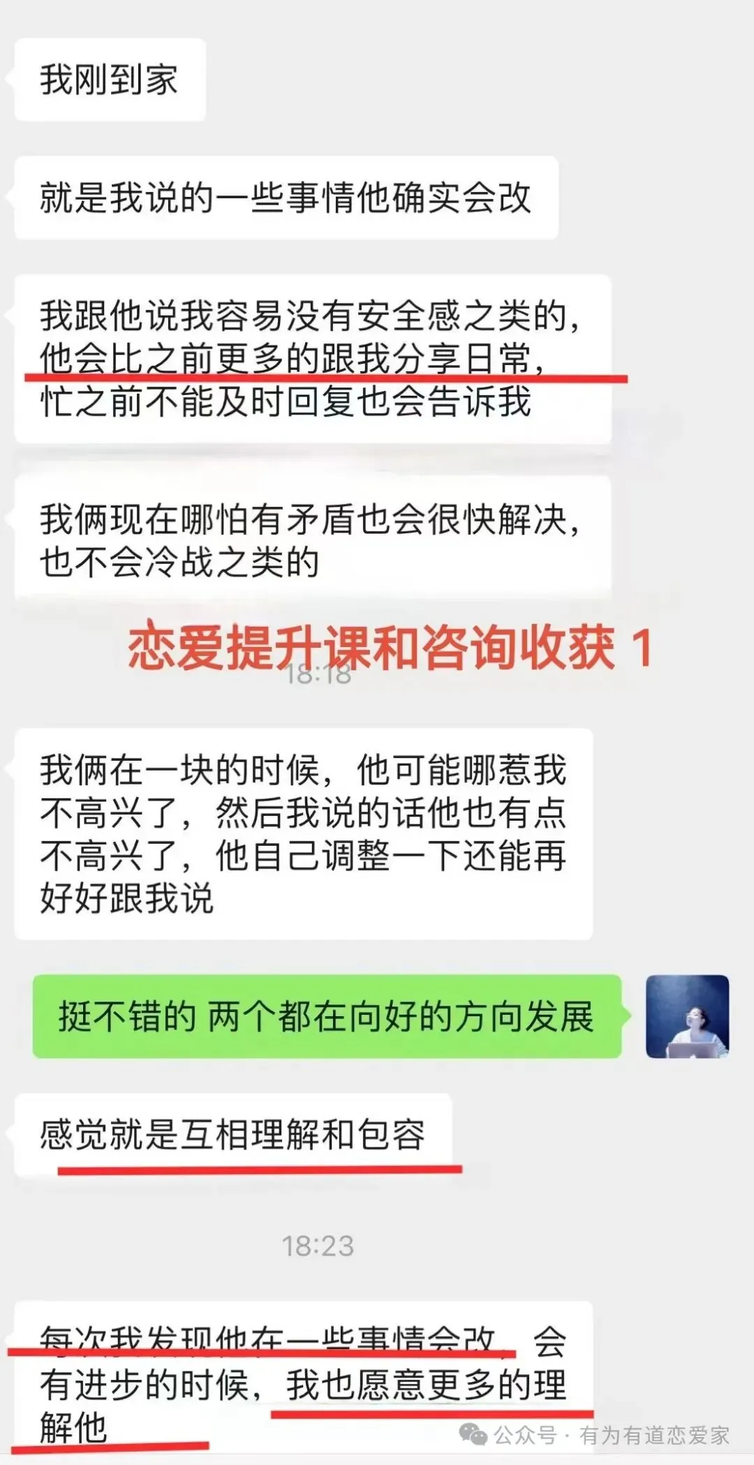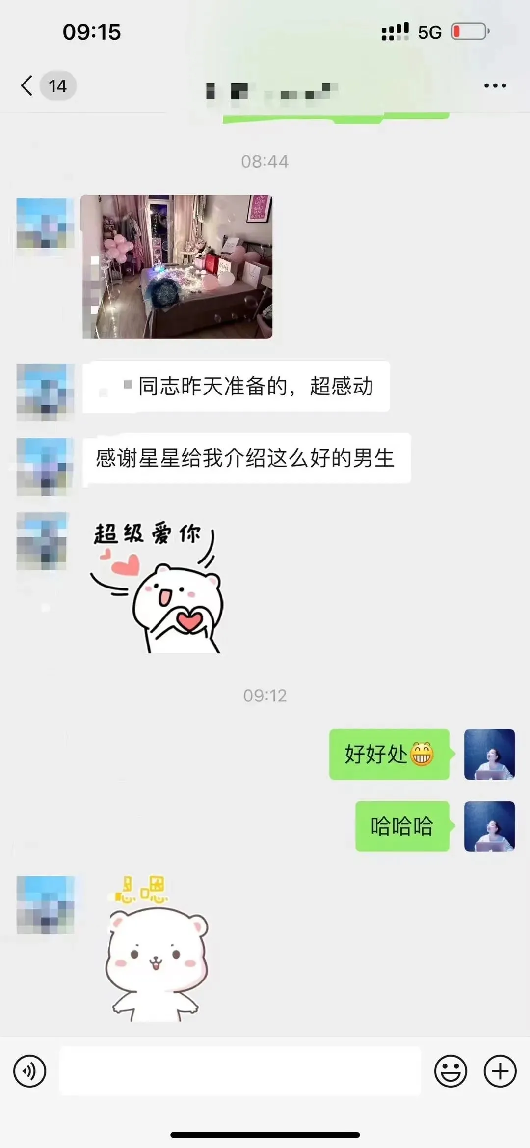 特别感谢恋爱家的老师们的耐心指导,原来的我很不愿意表露自己内心的想法,是你们让我更加自信地去表达。能遇到刘同学是缘分,这个过程得益于你们的帮助。