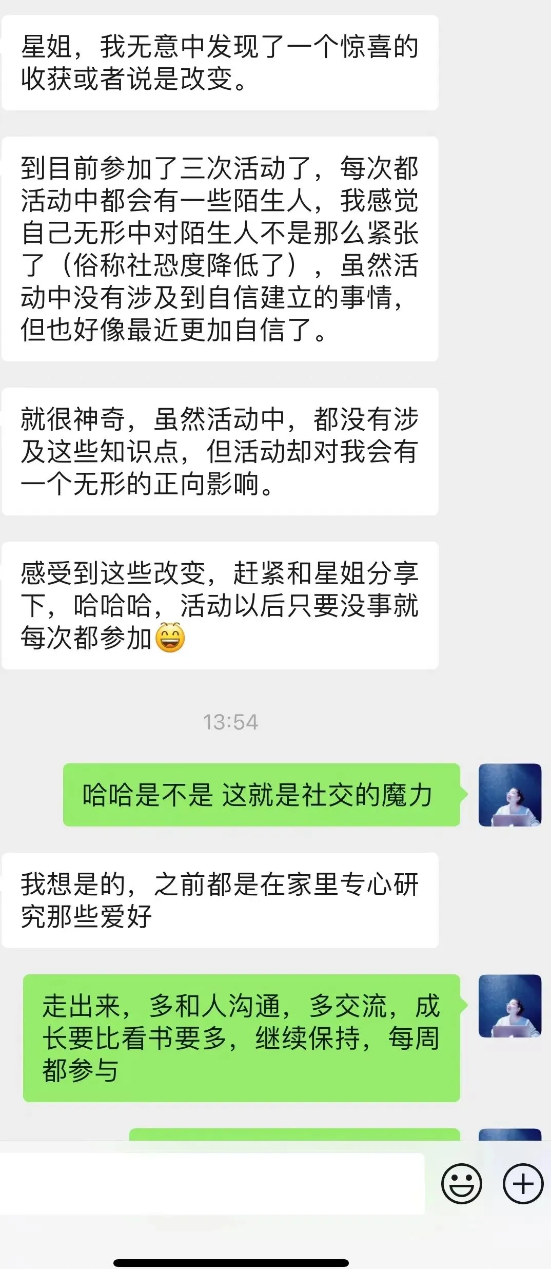 还要感谢文姐和东哥,之前我参加活动的时候,星星老师和东哥都很照顾我。祝恋爱家越办越好,帮助更多同学顺利脱单。