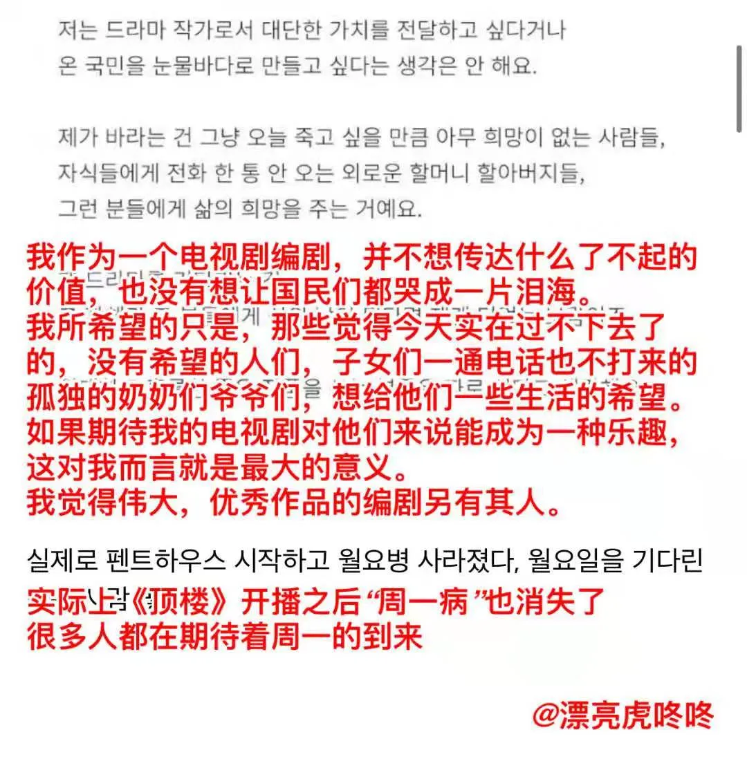金顺玉在采访里说,她的最终目的,是能通过有意思的剧情,让观众对生活多一分期待。
