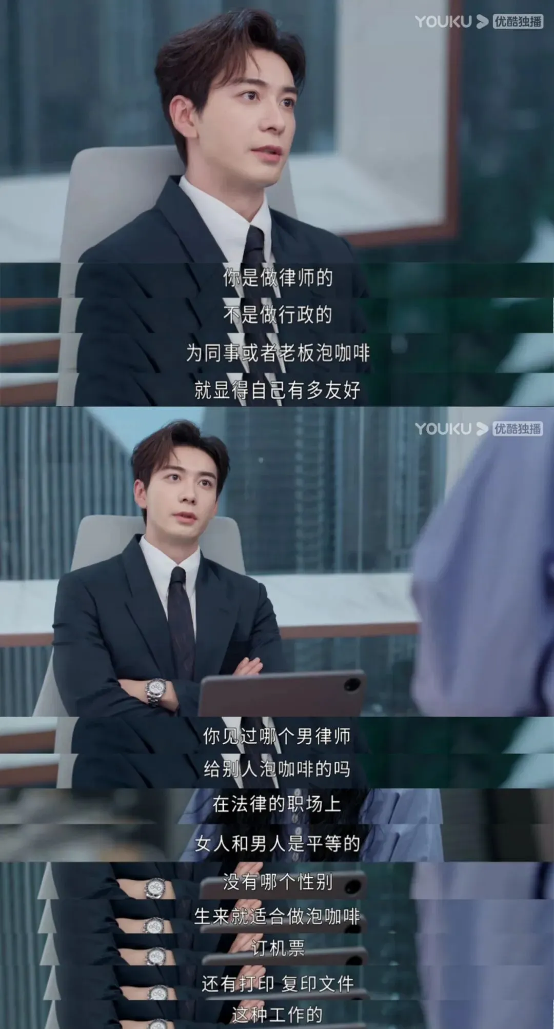 钱恒(陈星旭 饰)平权意识很超前,告别有毒的男子气概、摒除职场刻板印象,上来就贡献了对我乳腺很友好的名场面。