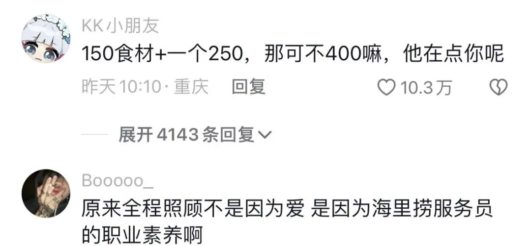一开始女友说要请吃海底捞