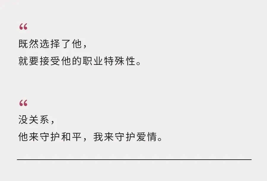 那时候他们还在读大学,只感觉跟大家一样,就是谈了段异地恋,毕业后才发现,比异地恋更难的是异地军恋。毕业后的两人,一个成为了舰艇军官,一个去做了培训老师,一个经常出海,一个经常出差,别说见面了,就连联系都不容易。经常是张宸有信号了打电话过去而商莹正在上课,等下课后再回过去,张宸又已经“漂远”了。为了能多点联系,张宸一有休息就给商莹打电话。有一回怕被发现他就躺在草地上打,大夏天在草地上打了一夜电话,被蚊子咬了一身包。见面更是比追星还难,恋爱五年,真正在一起的日子加起来大概也就180来天,这也让他们更加珍惜每一次的相见。都说恋爱中,总有一个瞬间,让你觉得往后余生,就是这个人了。