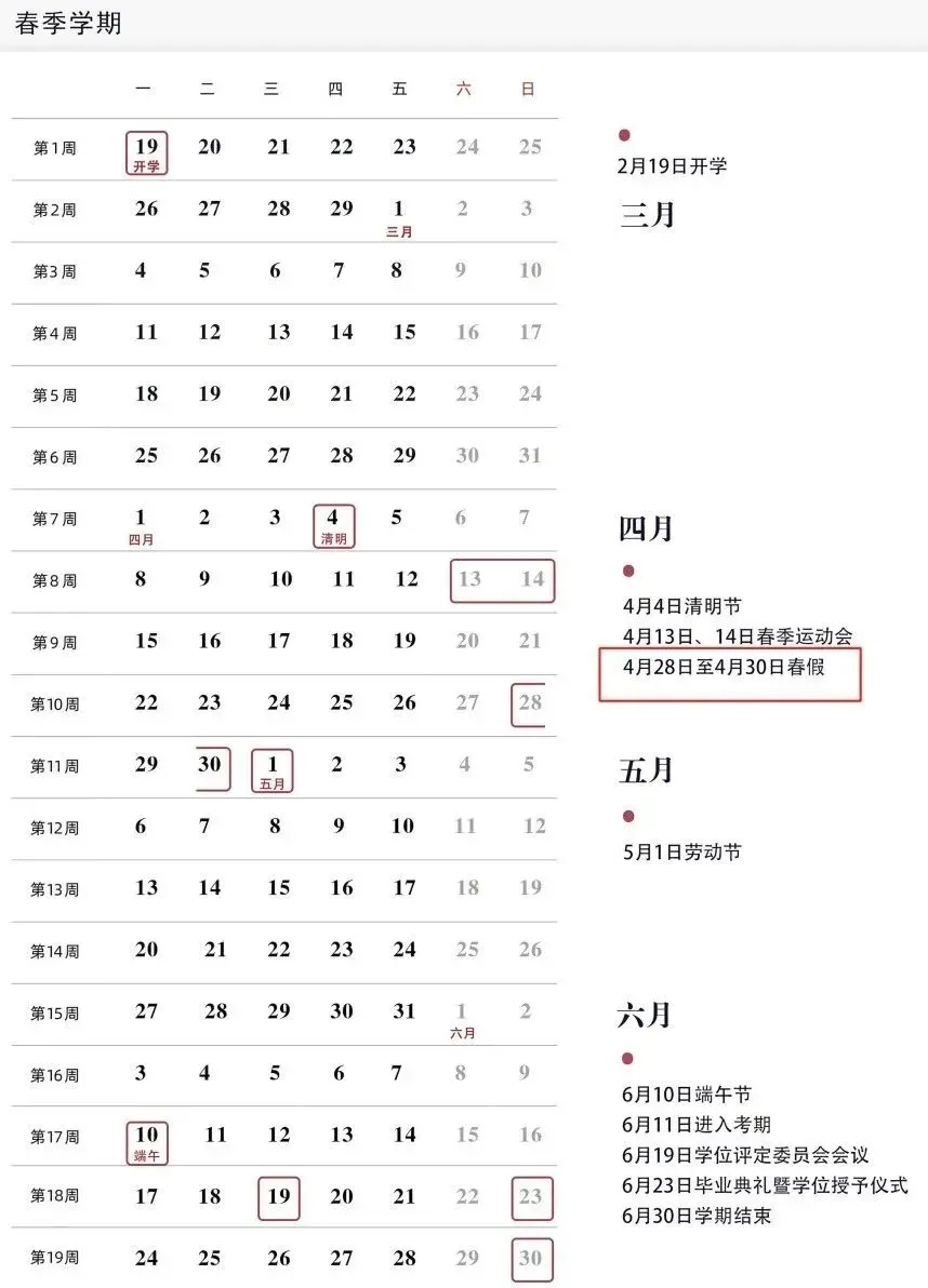 中国人民大学春假时间为