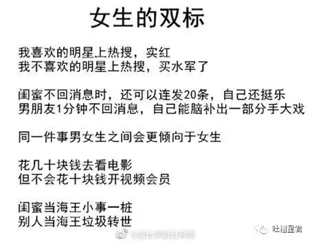 男生的双标vs女生的双标