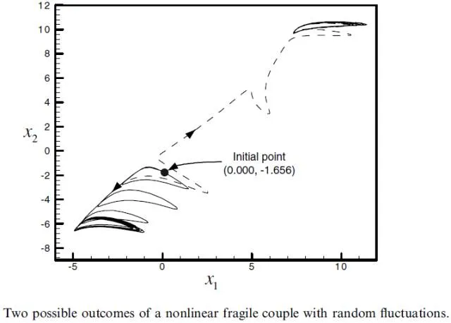 Fragile Couple的情况则更为复杂和不确定,任何随机扰动都会对其恋爱关系造成影响,甚至导致恋爱关系破裂,如下图。