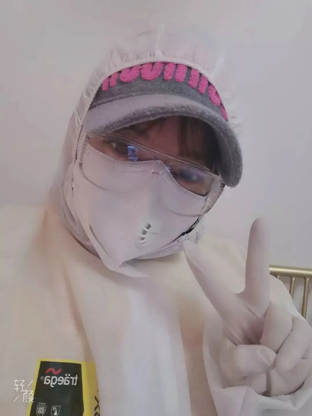 我戴双层口罩,里面戴一个一次性医用口罩,外面戴一个N95,里面那层四个小时换一次,耳朵勒得很疼。防护服脱穿很麻烦,所以说只要你出来,就不要想吃东西,也不要想喝水,也不要想上厕所,全部回家解决。中午有别人赠送给我们的面包、牛奶、方便面,我们躲在一个房间凑合着弄一下,要不就不吃,能坚持就不吃。一天吃不了什么东西,而且又戴着口罩、穿着防护服。最后累得不想说话,坐着,发个呆,休息一会儿,然后再回家。我出去心理压力也很大,所以我回来进门之前,消毒工作从头到脚,到鞋底都不放过。防护服那些在楼下脱下,拿个塑料袋装起来丢到垃圾桶。站在门外喷消毒液,我老公拿着“枪”对着我喷,感觉我的呼吸道都被消毒了。然后把鞋子和衣服放到阳台上晾晒,秋衣秋裤虽然穿在里面,但是(由于)心理作用我要把它洗掉,每天换一套。然后洗头、洗澡、洗脸、洗耳朵、洗手,洗无数次手。吃饭不跟他们一起吃,睡觉也是自己睡。我两个小孩很黏我,每次回家就喊“妈妈,妈妈,回来啦”,(我说)“你们离远一点,不能亲,不能抱,不能碰”,他们就很失望,说“妈妈不喜欢我了”。我从小生活在武汉,一路看着武汉的变化,从小街小巷到高楼大厦。武汉人很泼辣,爱憎分明。那天我们给青海援助队送东西,他们说武汉人好热情,疫情过后一定要来玩一下。我说到时候我给你们做向导,带你们到处吃喝。我每天发(朋友)圈,不是为了宣传自己,(是)为了把这种正能量带给那些困在家里的人,让他们看一下,武汉不是没救的,不是没有人管。那天我去武昌运消毒水,路上我拍了江滩夜景发到朋友圈,龟山电视塔上面写着“武汉加油”、“中国加油”,朋友都很惊讶,竟然开灯(光秀)了,没有人出去还开灯了。我哪一天不发,很多朋友就问你干嘛去了,想看看你在干什么,相当于我们就成了他们的眼睛。