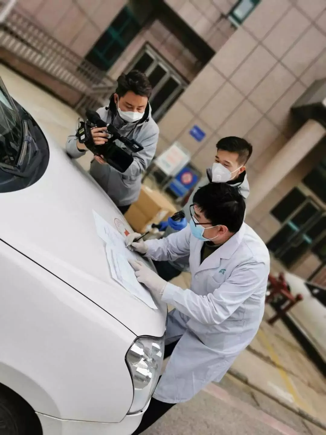 中央电视台国际频道跟拍志愿者给四医院和儿童医院分配物资,医生正在签字确认。