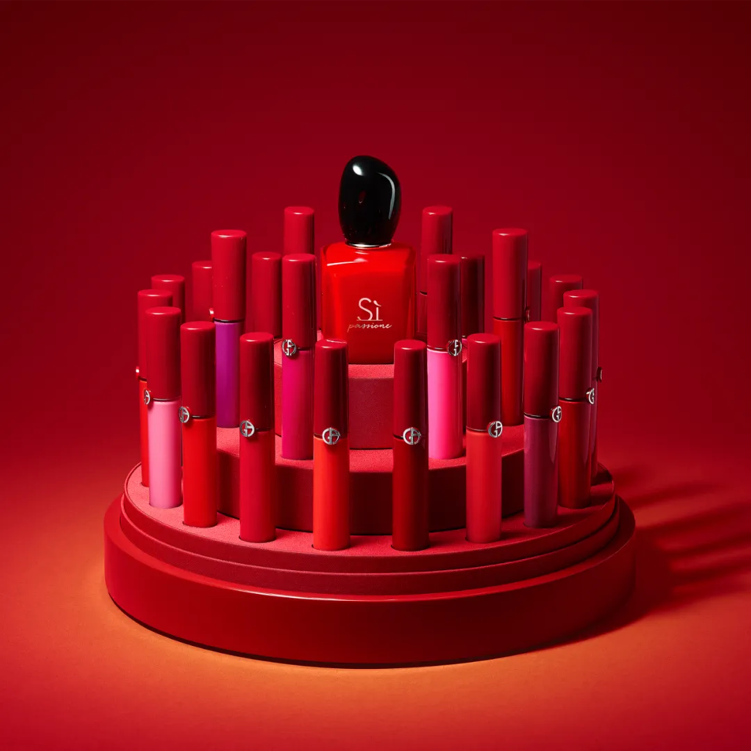 这个美妆蛋糕盒可以旋转,24支阿玛尼传奇红管和1个全新浓情版红色挚爱香水一键get!谁能收到它请火速私信我晒晒图让我羡慕羡慕~