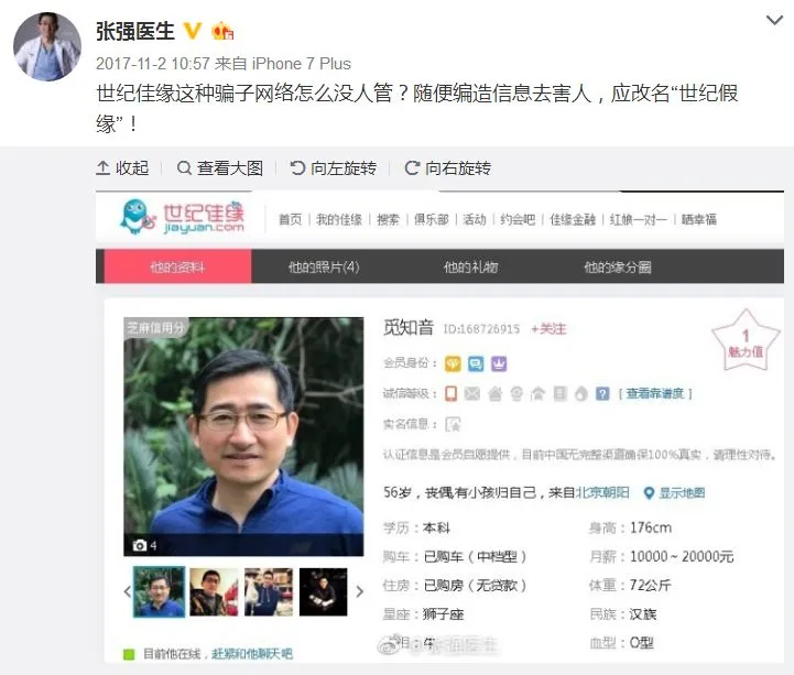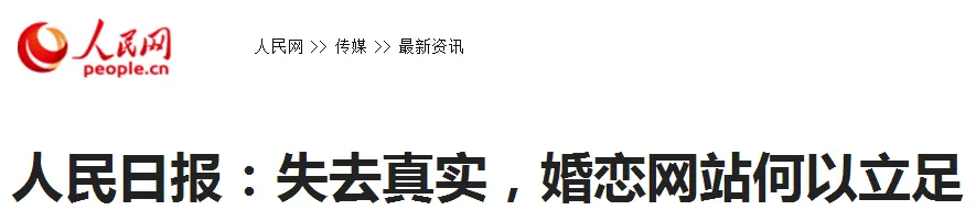 不管真相如何,促成两人交往的关键环节是婚恋网站,责任无法逃避。有关婚恋网站实名制认证的讨论,网上从未停息过。