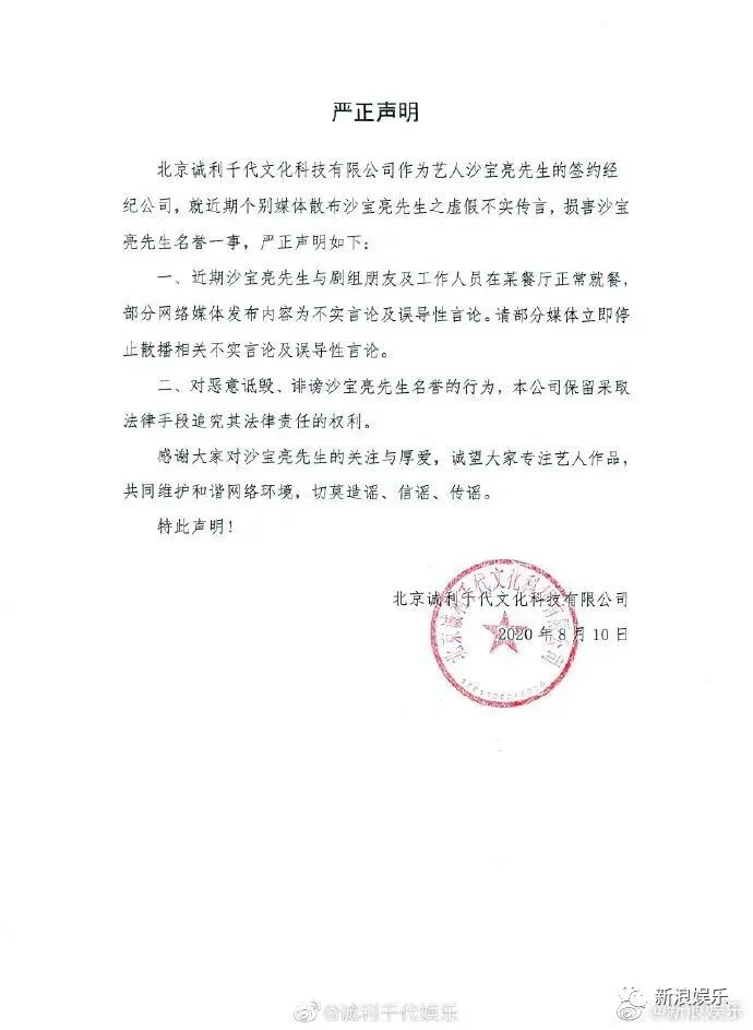 今天晚间,沙宝亮经纪公司发声明否认了,表示只是剧组聚餐。所以,只是好朋友间的牵手?