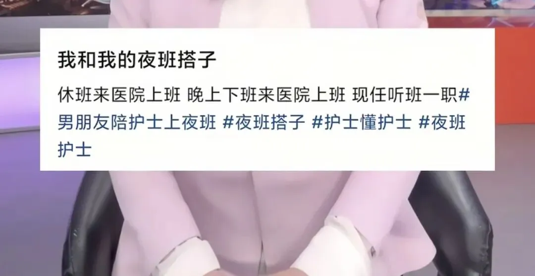 更不可思议的是,这名护士还配文秀恩爱称,我和我的夜班搭子,休班来医院上班,晚上下班来医院上班,现任听班一职。
