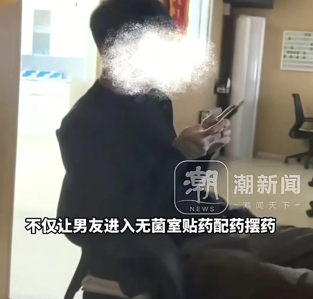 从视频中可以看出,其男友穿着便装,很贴心地帮她贴药瓶标签,写报告。
