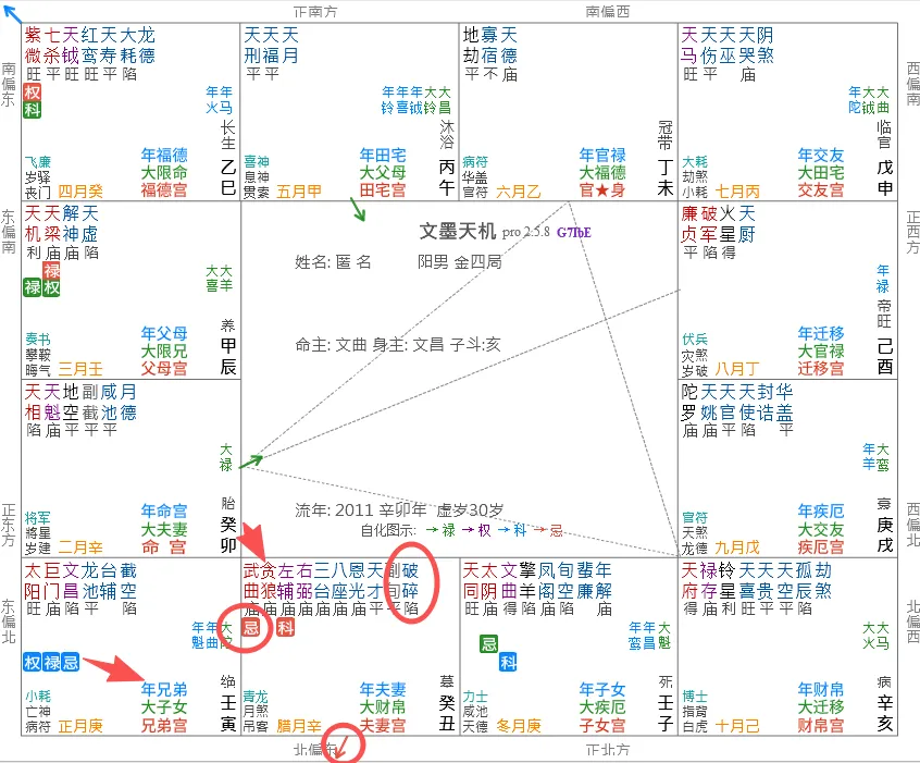 ④流年命宫宫干化忌入原局夫官线;