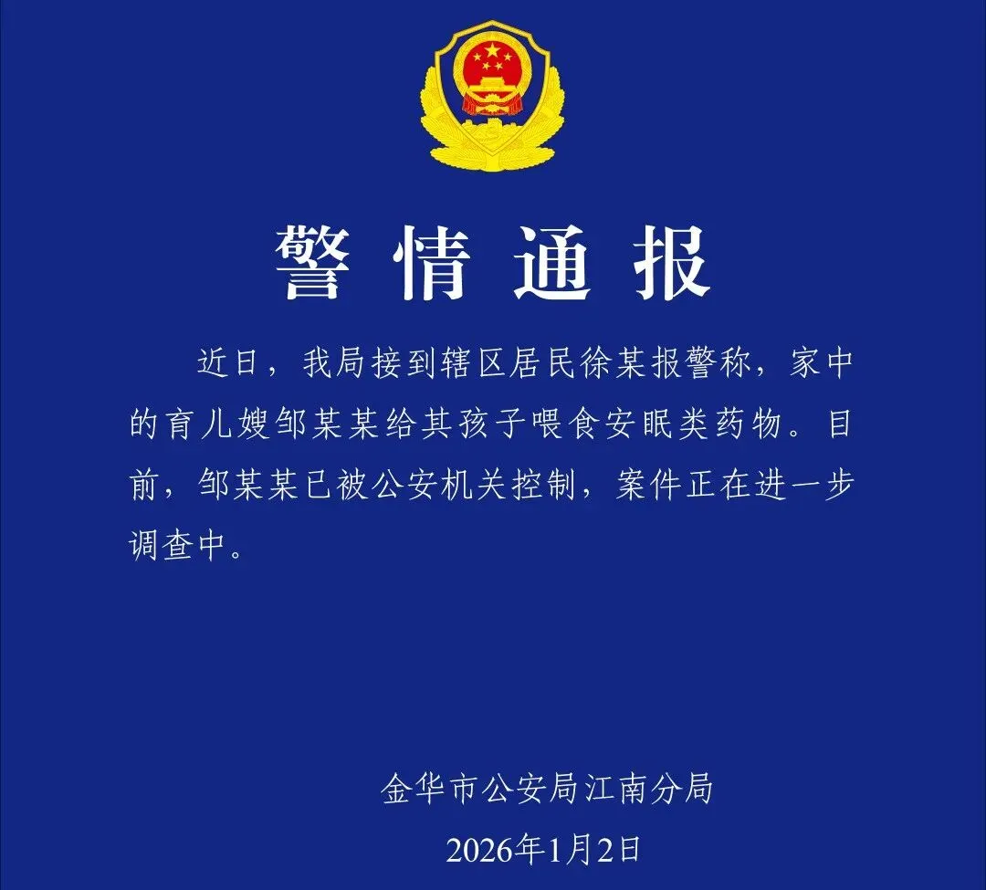 【2】“育儿嫂给孩子喂食安眠类药物”,浙江金华警方通报