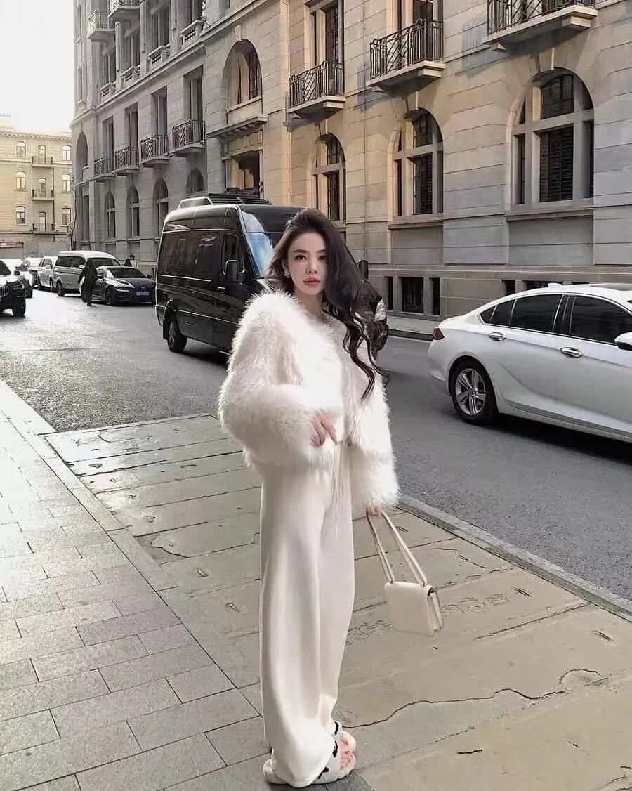 我是真的太爱这一身了!毛茸茸的奶白外套一上身,整个人就像软萌甜点一样,走哪都自带柔光滤镜✨。下装我选了宽松的奶油白裤子,超显腿直,还特别温柔显气质~配个同色系小包,温柔感直接拉满!男朋友第一次看到我穿这身的时候,笑着说“你今天像一只雪糕精灵”,我当场心化一地🫠。冬天嘛,就要穿得软糯奶感一点,自己舒服,别人看了也想rua一下!真的姐妹们!这套奶呼呼的穿搭谁穿谁甜~