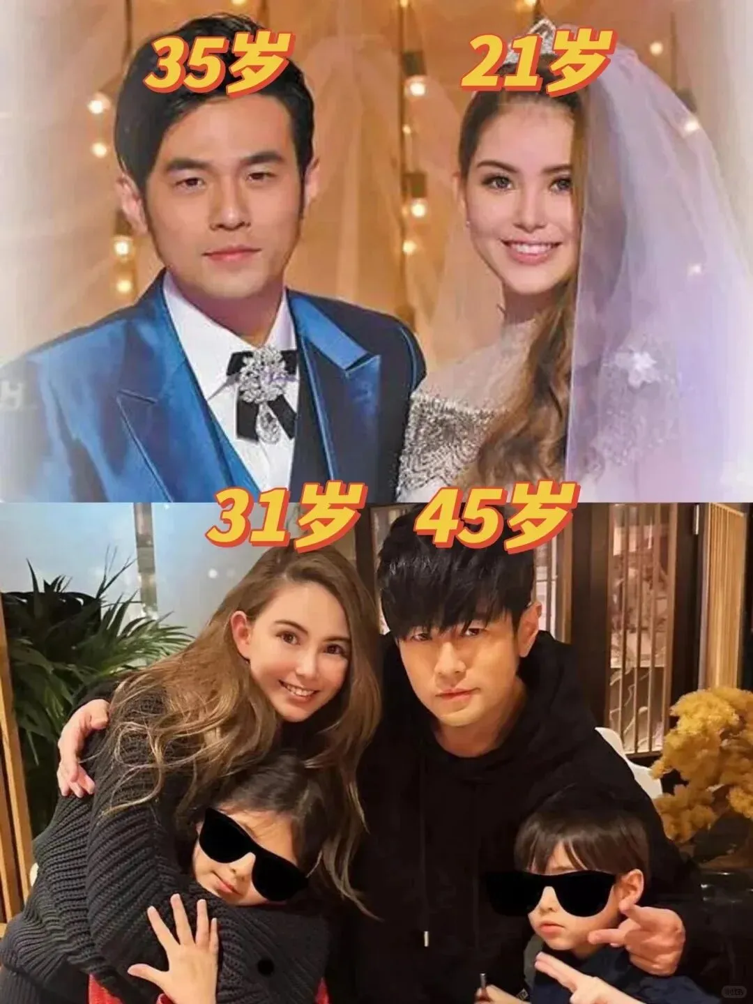 除此之外,像黄晓明和网红叶柯,相差15岁,潘玮柏和妻子宣云,也相差14岁,胡彦斌和网红易梦玲相差16岁,林峯和张馨月相差10岁……