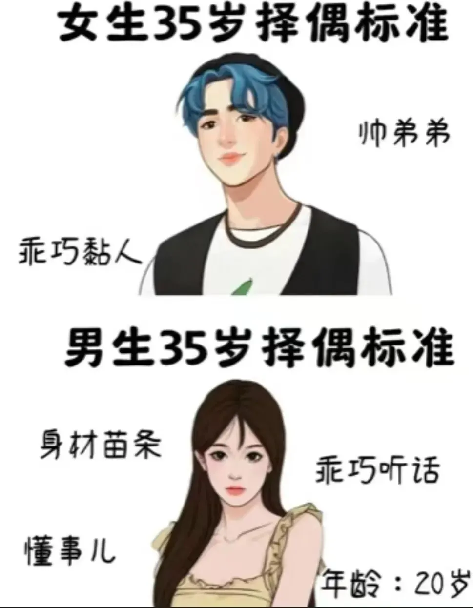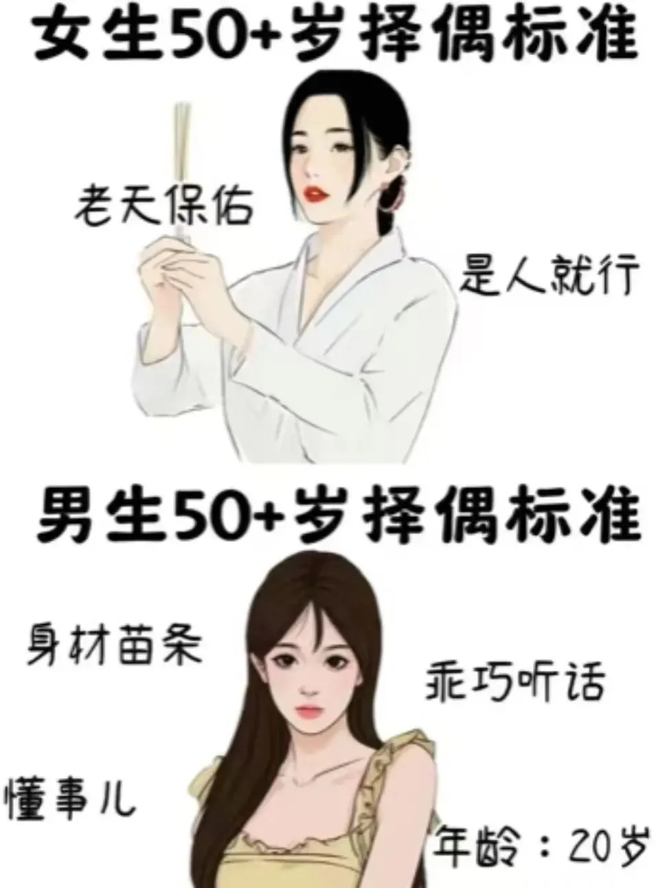 大部分男人不管是20岁还是50岁,标准只有一个,年轻的、漂亮的、温顺的。