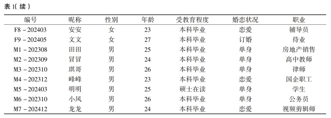 本文的资料搜集工作始于2023年8月,采用线下与线上(腾讯会议)相结合的半结构式访谈方式,运用滚雪球和网上招募的方式选择了16位被访者,重点围绕其恋爱行为与婚育意愿及背后的影响因素展开探讨。