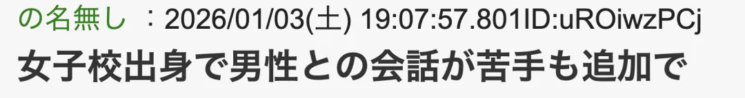 还要加上“女校出身,不擅长与男性交流”这点。