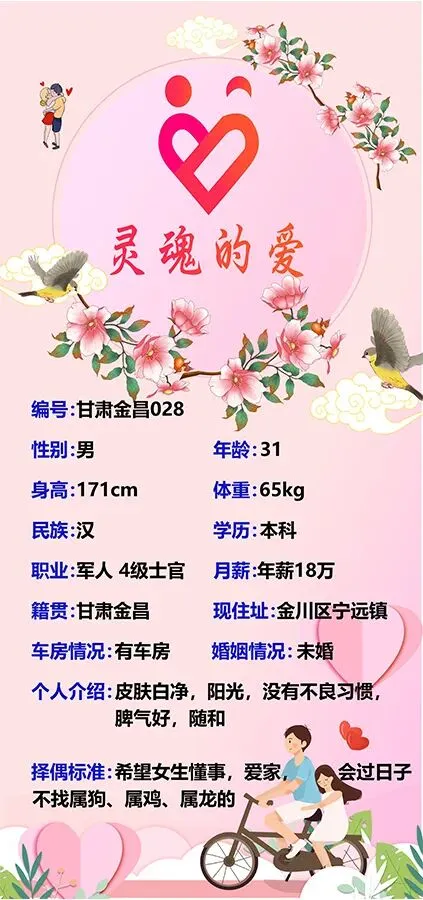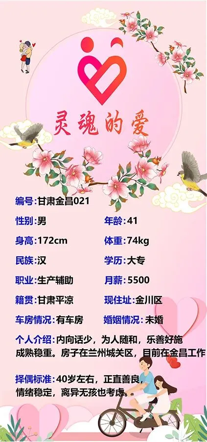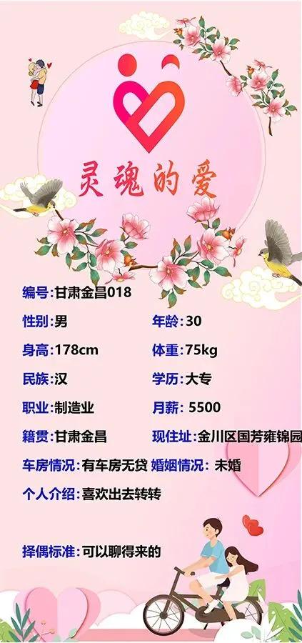 本公众号仅负责发布婚恋信息,不对婚恋信息内容的真实性、准确性及合法性进行核实。男女双方需自行核实对方身份及信息真实性,本公众号不承担任何因交友引发的争议和纠纷。