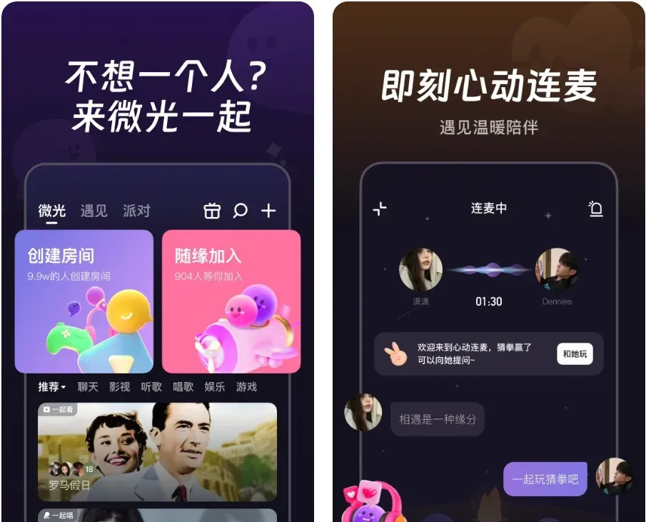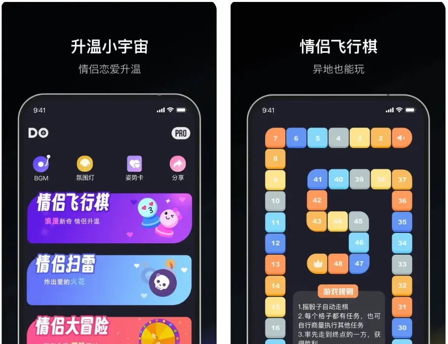 关键词:互动游戏、暧昧挑战、趣味惩罚这款小众APP把飞行棋融入情侣互动,骰子点数关联亲密任务,像“对视10秒”“模仿表情包”。还有暧昧BGM与灯光,很适合约会破冰、增进亲密度 。