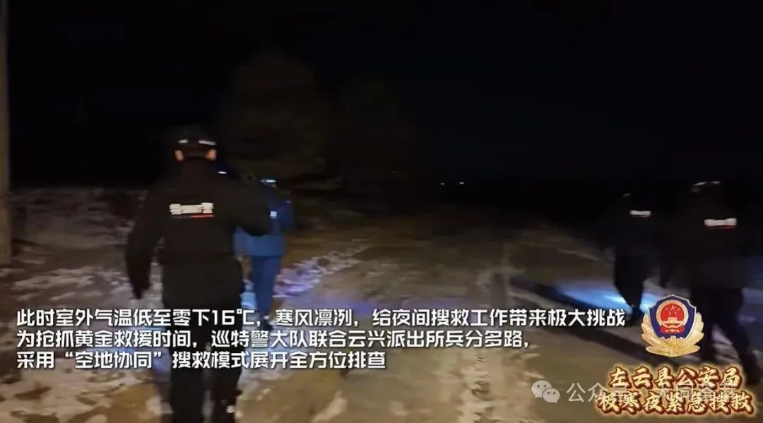 近日,左云县公安局巡特警大队接到指挥中心紧急指令:杜某某因与女友分手,产生轻生念头后离家出走,情况危急。接到指令后,大队立即启动应急救援预案,迅速集结警力,携带无人机等专业装备火速赶赴现场处置。此时室外气温低至零下16℃,寒风凛冽,给夜间搜救工作带来极大挑战。为抢抓黄金救援时间,巡特警大队联合云兴派出所兵分多路,采用“空地协同”搜救模式展开全方位排查:地面警力以杜某某可能出现的区域为中心进行拉网式搜寻,不放过任何一处隐蔽角落;无人机小组则启用热成像功能,在空中对开阔区域进行立体扫描,凭借科技优势破解夜间视线受阻、地形复杂等难题 。经过近3小时的持续搜寻,民警最终在野外树林中发现杜某某。此时该男子情绪低落、身体因严寒略有不适,民警立即上前为其提供保暖防护,耐心开展心理疏导,逐步缓解其极端情绪。待杜某某情绪稳定后,民警将其安全送至家人身边,并叮嘱家属加强沟通陪伴,密切关注其心理状态。此次救援行动,左云县公安局充分发挥“快反快处”优势,以“科技+人力”的立体搜救模式,在极寒天气下成功化解危机,用实际行动践行了“人民至上、生命至上”的宗旨理念,彰显了巡特警队伍“召之即来、来之能战、战之必胜”的过硬作风 。来源:左云县公安局