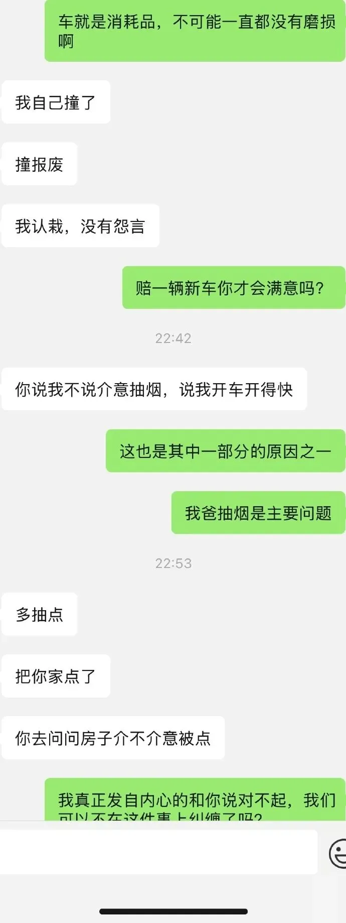 标题:男朋友开车带我爸,我爸在车上抽烟把座椅烫破了一个洞,我赔了钱还不依不饶一直说…. 这是他人生中的第一辆车,他比我小一岁24岁,这辆车他特别爱惜。