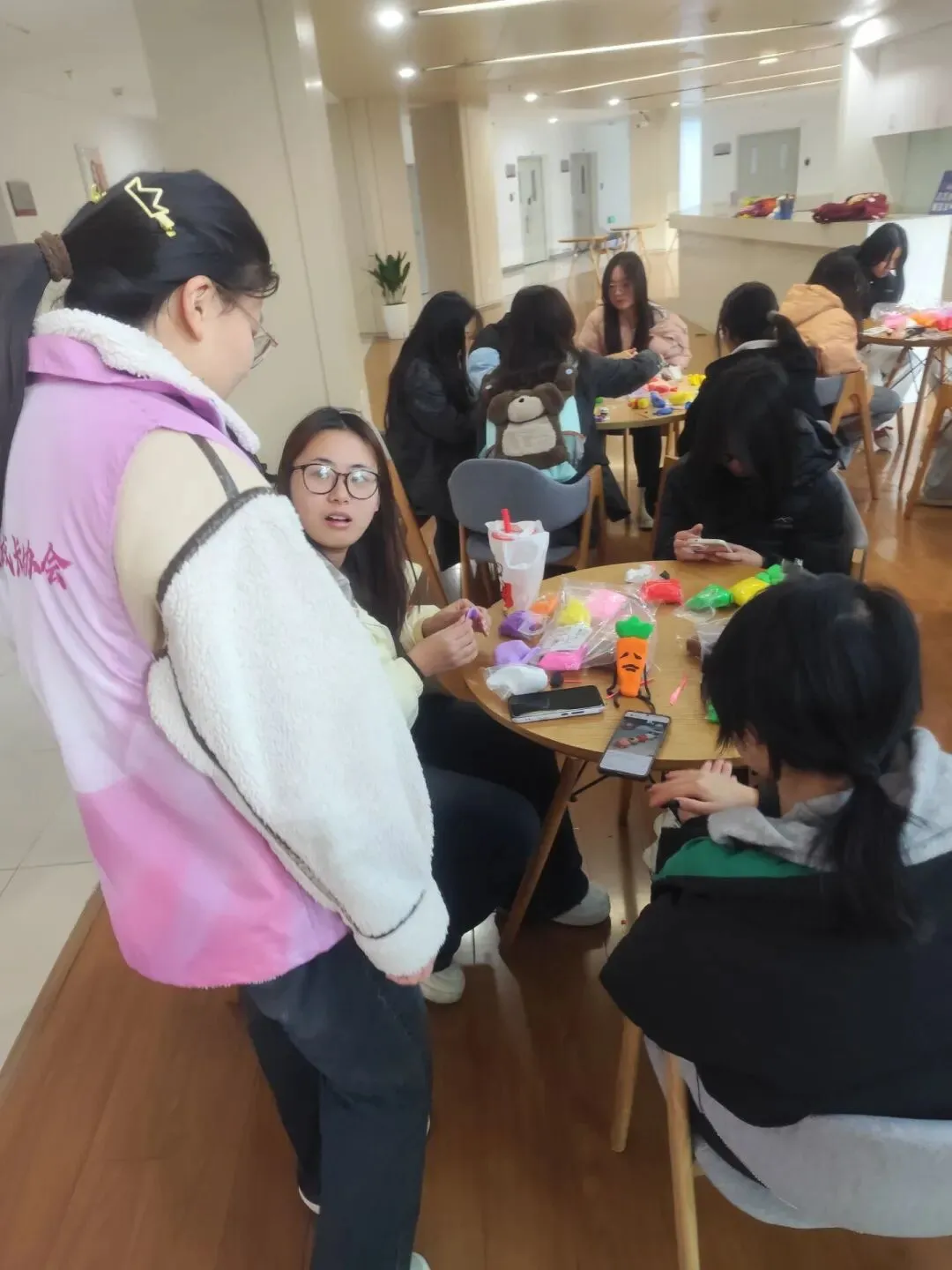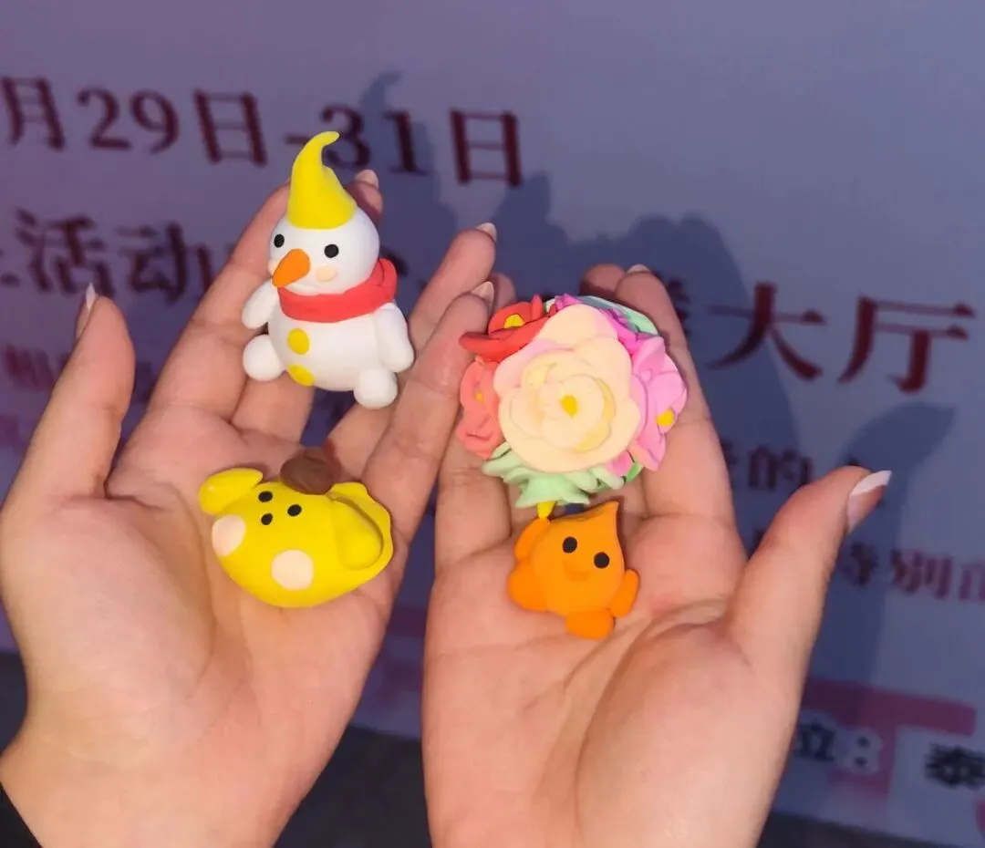 休息区现场备齐各色黏土及塑形工具,同学们携手创作Q版小人、玫瑰等爱情主题作品。作品可带回家珍藏或现场展示。活动让参与者在慢节奏创作中放松身心,感受手工乐趣的温馨美好,为忙碌生活增添一抹温柔。