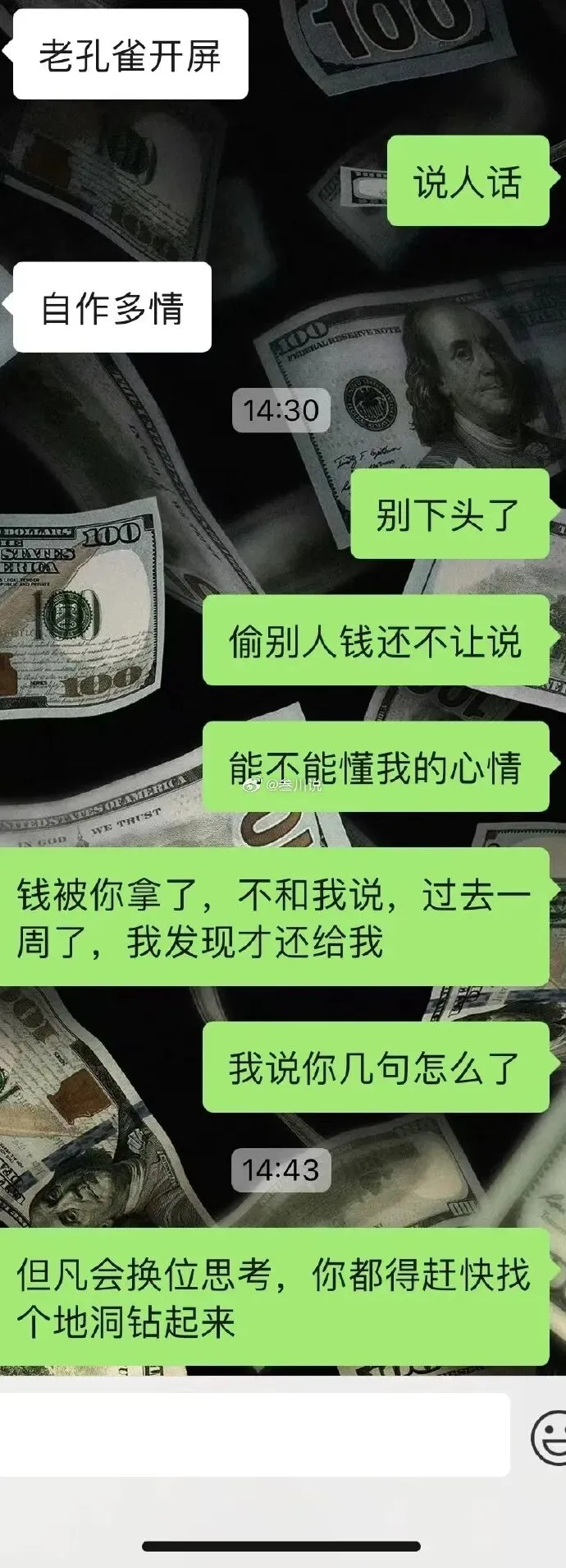 @圆圆圈圈:她拿你钱是她不对,但是你大可以好好说吧,你们是仇人吗,还有人家都把你拉黑了应该叫前女友了