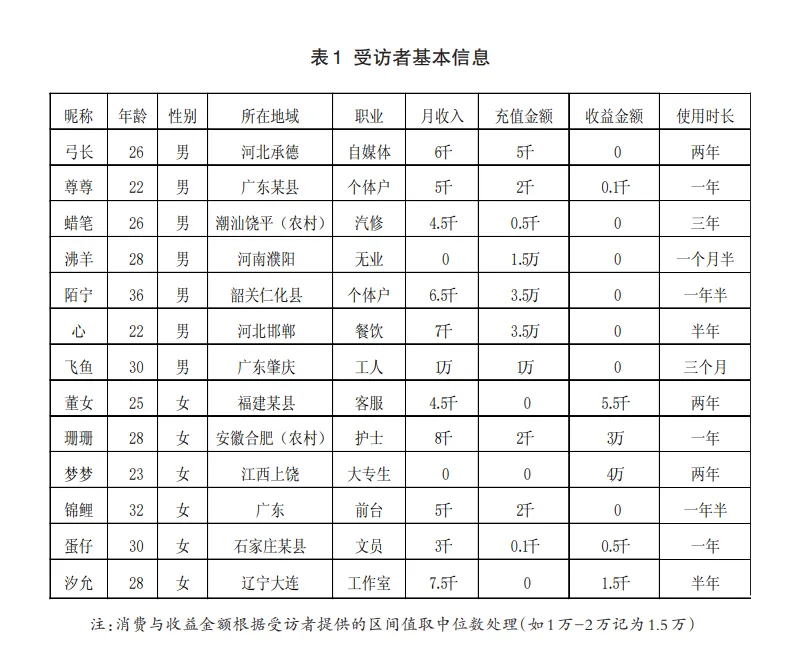 Q 平台男性用户多为面临现实婚配压力的大龄单身男性,受社交圈层狭窄等因素影响,怀着寻找婚姻伴侣的期待进入平台,却在情感货币化规则下陷入被动情感消费,难以实现初始目标,分化为小额消费者与高额消费者两种典型模式。