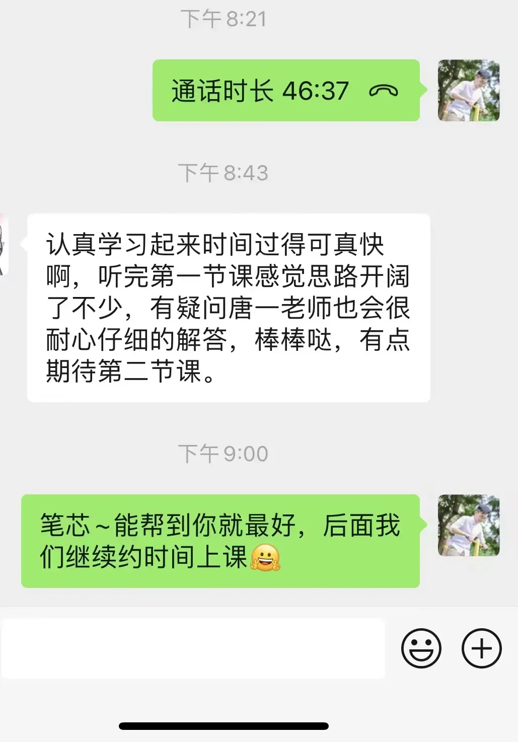 而且在课程正式开始之前,我还会和你先来1小时的交流,了解你的需求和基本信息,为你制定最合适的授课方式。