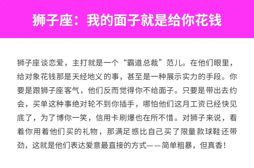 说起谈恋爱这事儿,除了走心,有时候还得走点“肾”——也就是钱包得跟上。大家别觉得谈钱俗气,真爱一个人,那是巴不得把全世界最好的东西都捧到对方面前。有些星座平时对自己抠搜得像个铁公鸡,一谈恋爱立马变身散财童子,只要对象开心,刷卡连眼都不带眨的。今天咱们就来盘点一下,十二星座里谁是那种为了爱情最舍得砸钱的主儿,看看你的那个TA上榜了没?