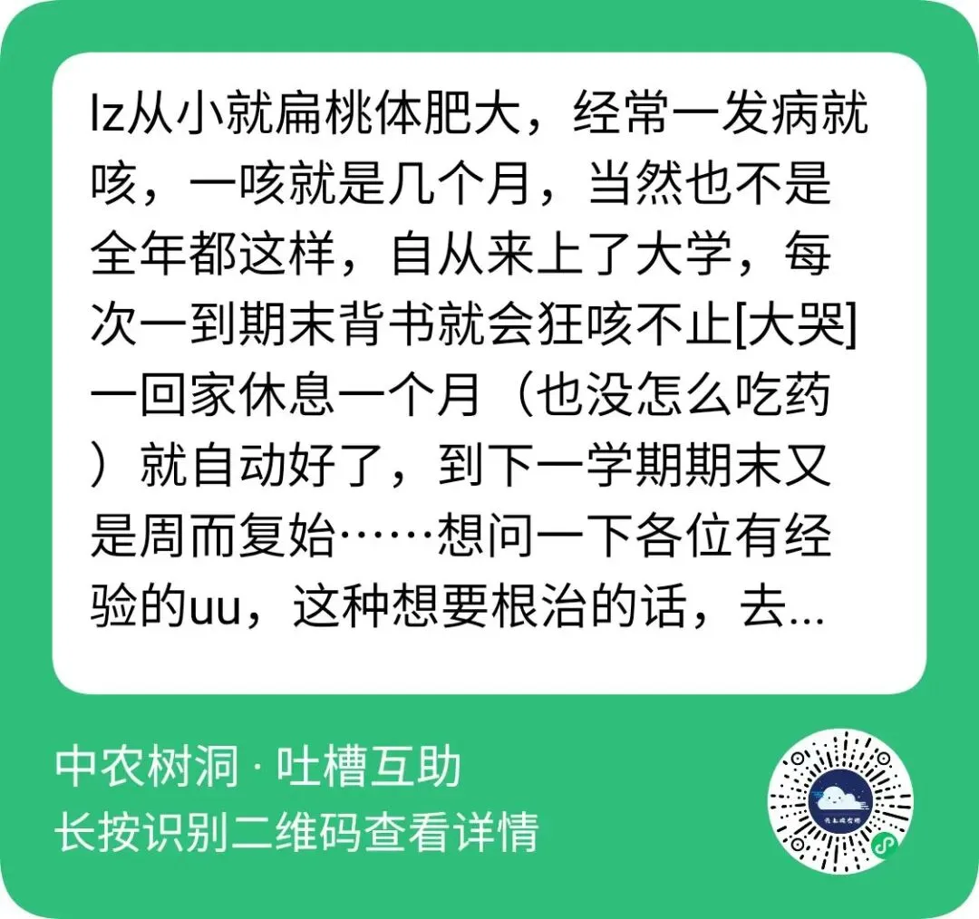 Iz从小就扁桃体肥大,经常一发病就咳,一咳就是几个月,当然也不是全年都这样,自从来上了大学,每次一到期末背书就会狂咳不止