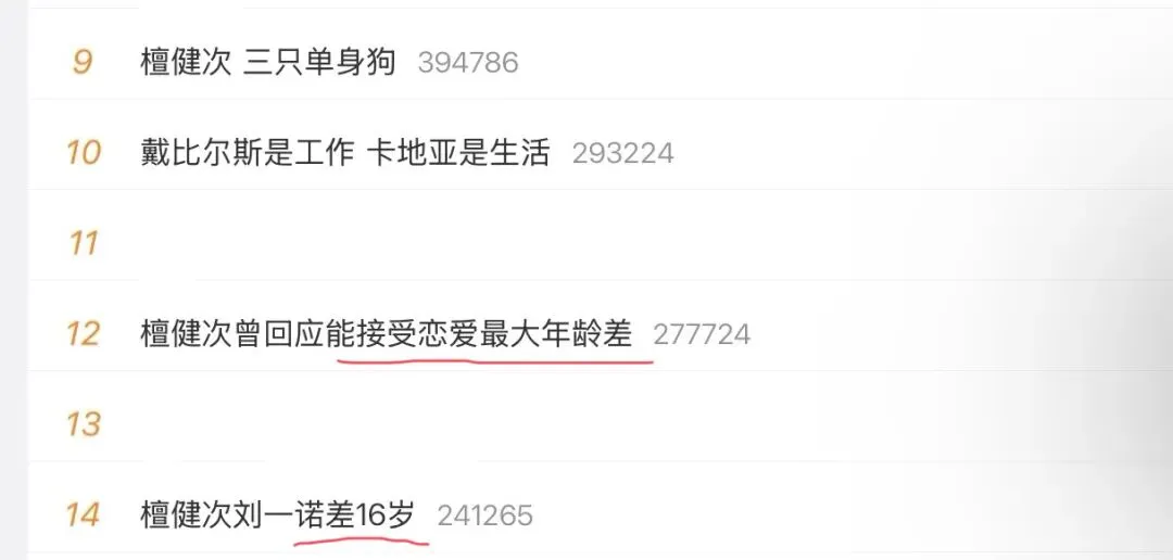 热搜里有一个是说,檀健次曾经表示过,恋爱能接受最大的年龄差是十岁,