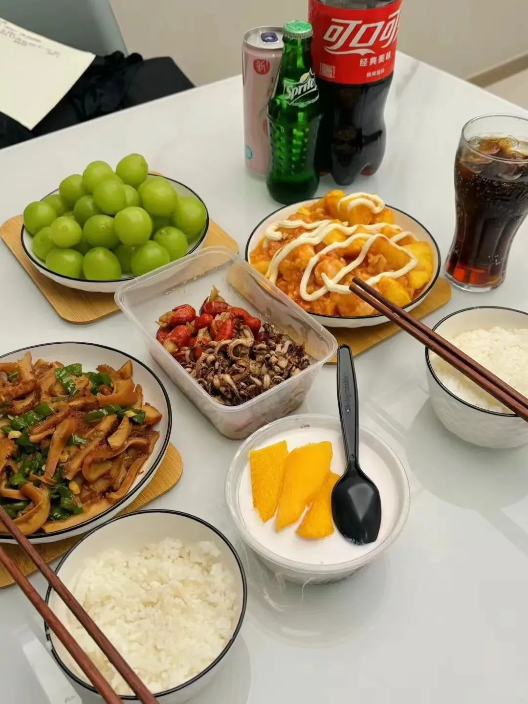 - 跨年那天我们没有外出觅食,而是在家张罗了一桌菜:蒜蓉花甲、牛肉菠萝、蒜泥生菜、芥末虾球,复刻了网红话梅小番茄,买了布歌东京。