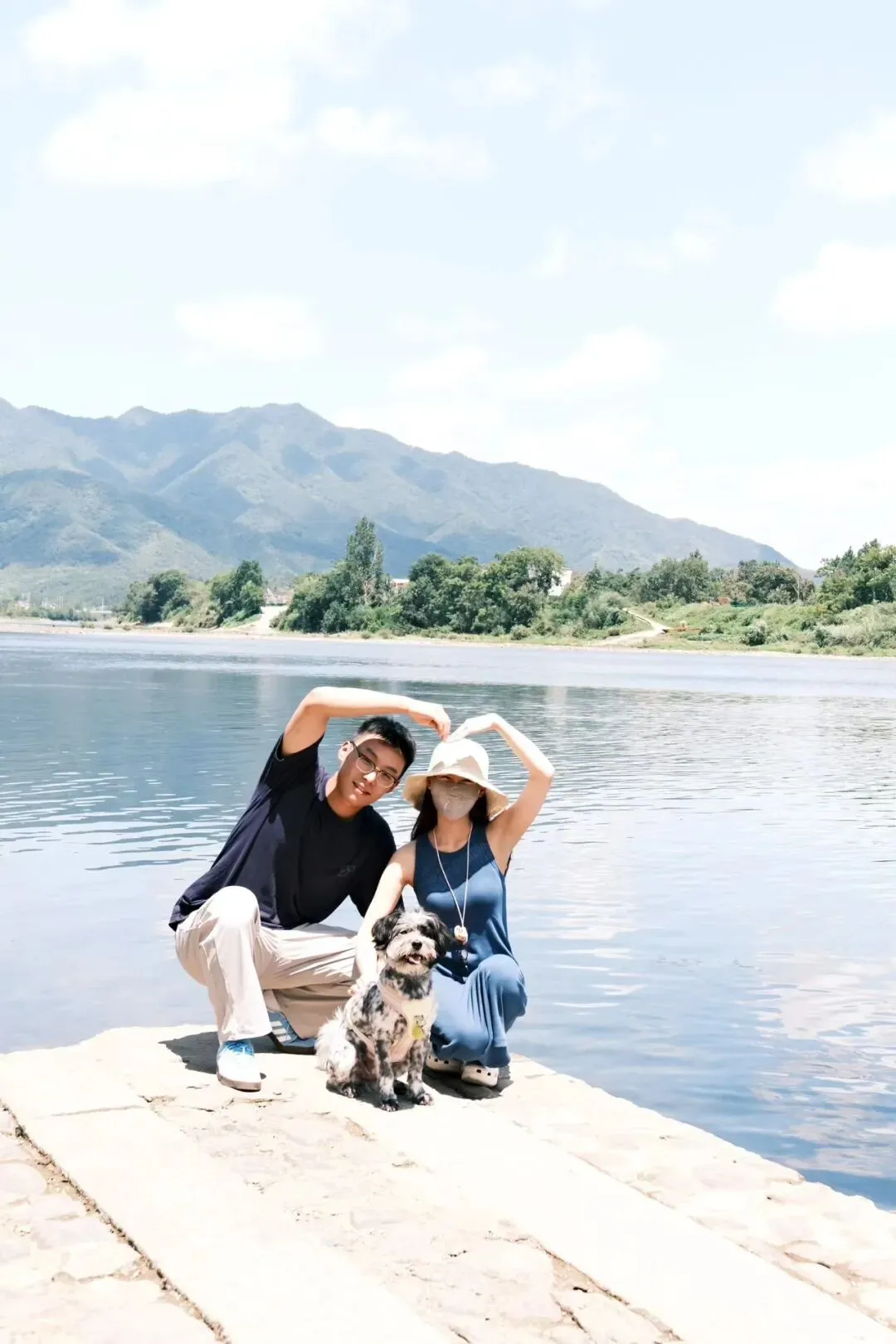 - 暑假和你家人同行安徽,带上了波妞。那真像回家一样自在,院子开阔,门一开它就冲出去撒欢。我们蹲在水边合影,它乖乖凑近镜头,仿佛真是一家三口。还体验了浆板,更发现了波妞的游泳天赋,它扑腾扑腾,竟真能游起来。