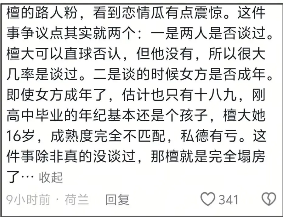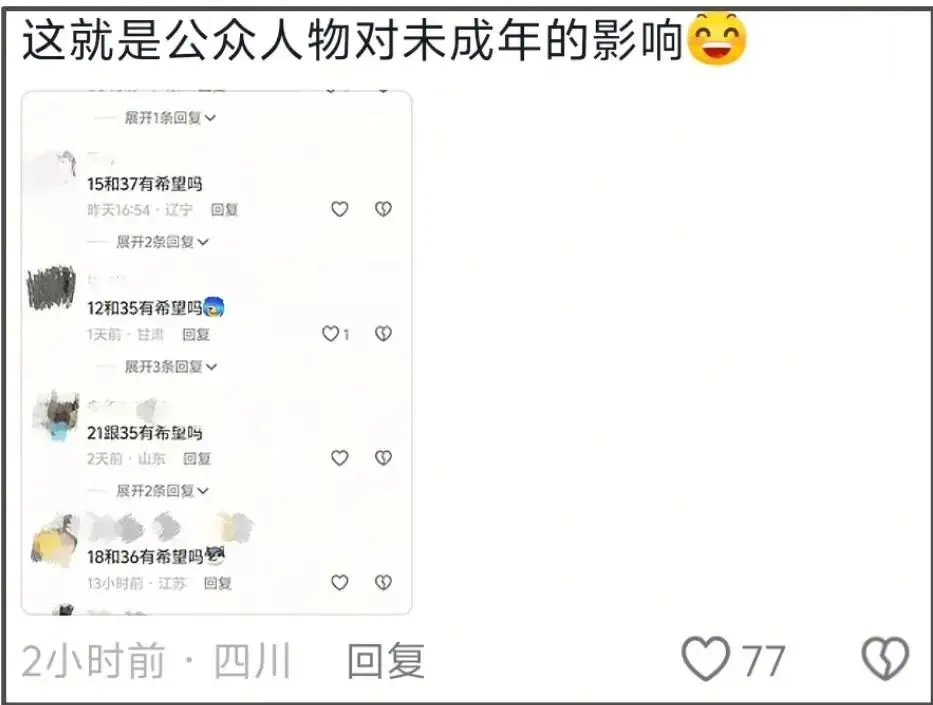 不得不提的还有檀健次对于年轻粉丝的影响,为了给檀健次洗白,粉丝刷屏式留言称自己十几岁想和三十多岁男的谈恋爱。